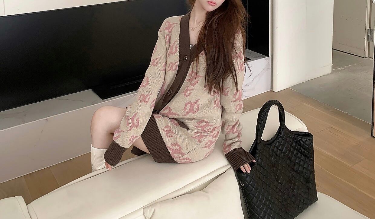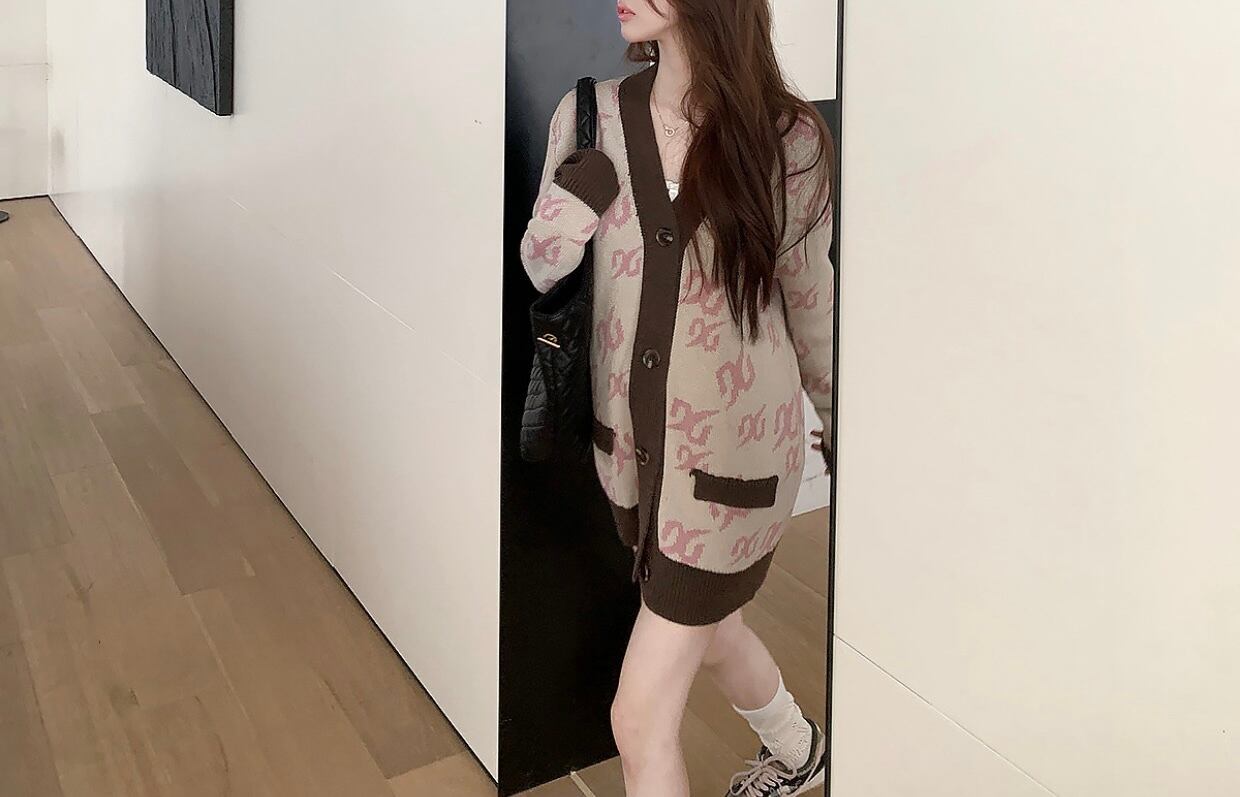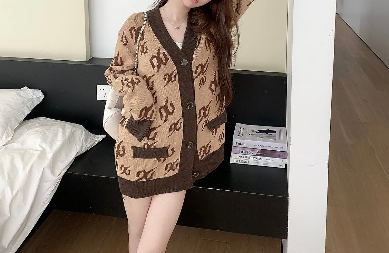 v neck long sleeve cardigan/2colors